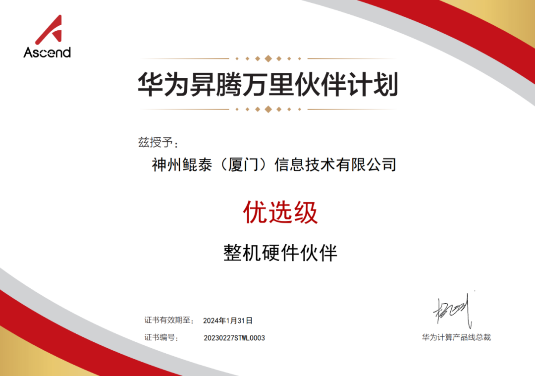 近日,多宝电竞数码旗下神州继获得华为鲲鹏领先级整机硬件伙伴认证之后,再获华为昇腾优选级整机硬件伙伴认证!这是神州与华为昇腾深化合作的硕果,也代表着多宝电竞数码信创业务在AI领域获得生态伙伴的充分认可。